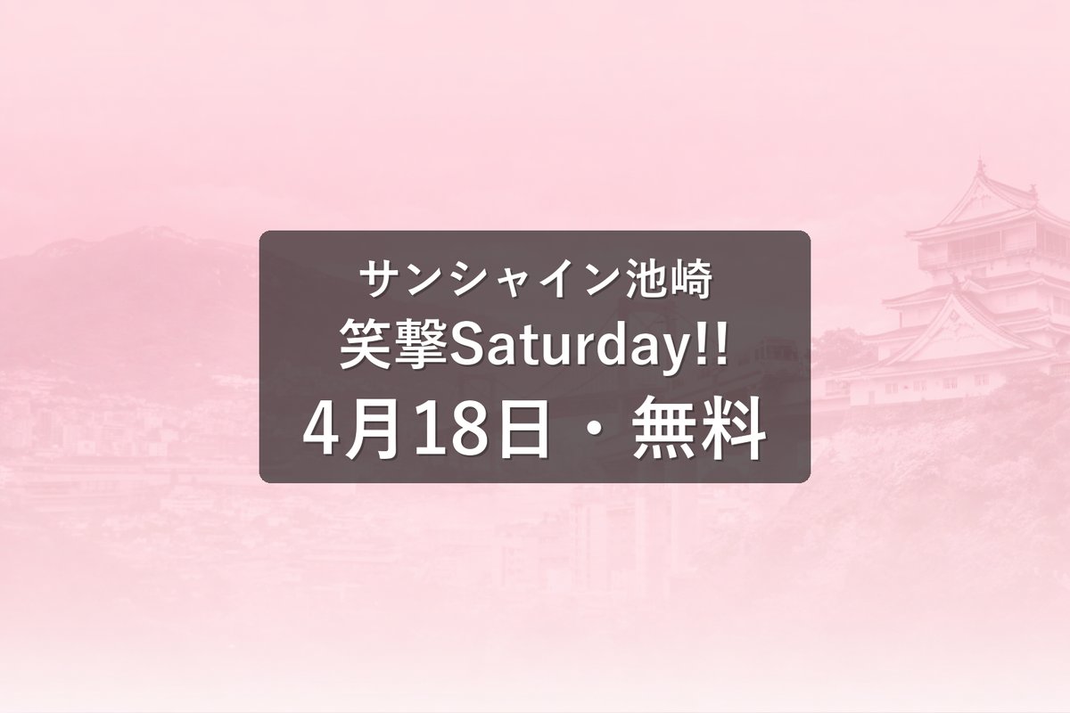 グリーンパークの野外ステージにサンシャイン池崎さんが登場します。2026年4月18日(土)に「笑撃Saturday!!」が開催され、12時と14時の2回公演が無料で楽しめます。入園料(一般150円)のみで観覧できる春のお笑いライブです。