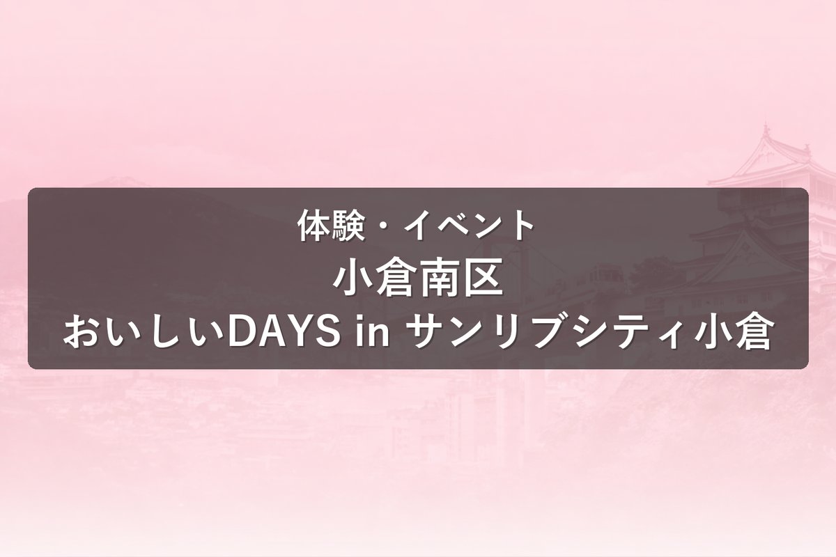 📍 サンリブシティ小倉(1F催事場) 北九州市小倉南区上葢原2-14-1