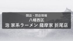 開店・閉店情報 泡 家系ラーメン 薩摩家 折尾店が3月24日オープン|九州初上陸・深夜1時まで営業・無限高菜無料 🍜 泡家系スープ 🥬 無限高菜・無限しば漬け無料 🌙 深夜1時まで営業 🚶 JR折尾駅徒歩3分大阪発の人気ラーメン店「泡 家系ラーメン 薩摩家」の折尾店が2026年3月24日にオープンしました。九州初上陸となる薩摩家の特徴は、博多一番どりと... 2026.04.19 開店・閉店情報
